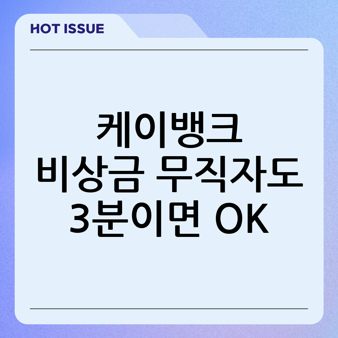 - 케이뱅크 앱에서 바로 신청 가능: 은행 방문이나 복잡한 절차 없이, 손안의 스마트폰 앱을 통해 모든 과정을 진행할 수 있습니다.